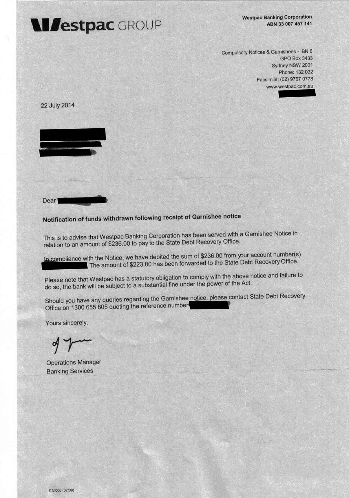 Well, you better believe it as it's happening alright, with this latest assault from the State Debt Recovery Office (NSW) getting $223 facilitated through the Westpac bank who got $13 for their trouble. So much for privacy and confidentiality laws, they simply don't exist for the money takers. View letter showing theft