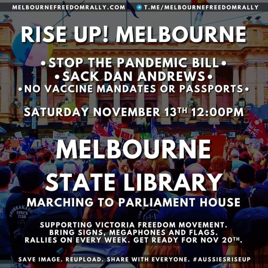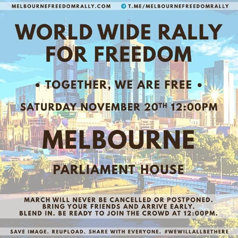 • Melbourne & Australia Wide Freedom Rallies - Sat 13 & 20 Nov 2021